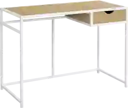 This Dexired computer desk with 1 storage drawer delivers stylish simplicity in a space-saving design. The desktop offers room for a laptop and the essentials you need to get work done. On the right, a storage drawer provides a convenient place to keep small supplies within easy reach. The drawer interior is finished in the same natural wood-look laminate as the desktop panel and drawer exterior for a clean look. A slim yet sturdy metal frame in a white finish outlines the desktop and storage drawer for a modern-industrial touch. The streamlined style of this compact writing table makes it a great choice if your home office space is in a living room or bedroom. Customer assembly is required.