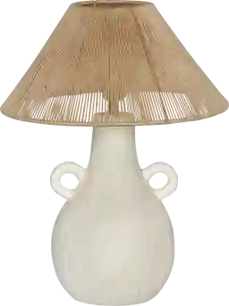 This lamp is a quintessential piece for "Boho chic" and modern coastal interiors. The combination of the hand-crafted look of the striped white ceramic base and the earthy texture of the natural jute shade provides a sophisticated, "textured neutral" aesthetic. It serves as a versatile accent that complements a variety of palettes, particularly those featuring wood tones, whites, and organic textures.