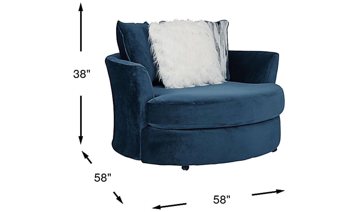 For a transitional way to recline and unwind in style, explore the Dharma Place swivel chair. Adorned with luxe Microfiber plush upholstery in a rich blue hue and offering an outsize silhouette, this chair is ideal for complementing your living room decor. A swivel bottom ensures effortless mobility, while three accent pillows offer a visually appealing contrast. Upholstery: 100% Polyester.