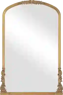 An ornate mirror acts as a powerful architectural focal point. The Baroque style, characterized by its intricate details and "Antique Gold" finish, introduces a sense of grandeur and historical elegance. The arched shape is particularly effective at softening the sharp, rectangular lines often found in modern furniture, adding height and a touch of "old-world" sophistication to the space.
