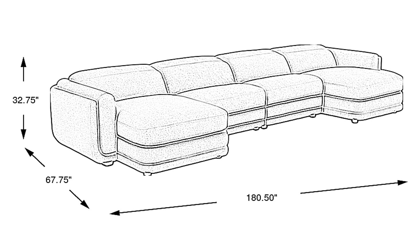 An inviting atmosphere that is at once casual and stylishly refined, the Drew & Jonathan Dillon reclining sectional's luxurious charm offers a fashionable touch to the everyday. Plush chenille fabric adds an elegant sophistication and chic padded tuxedo arms provide sumptuous opulence to this modern sectional. Its comfort level is further heightened with dual power reclining mechanisms, allowing personal adjustment in the headrests and chaise footrests while wide seating provides ample space for optimal relaxation. Includes dual power reclining LAF chaise, 2 armless chairs, and dual power reclining RAF chaise. Upholstery: 100% Polyester