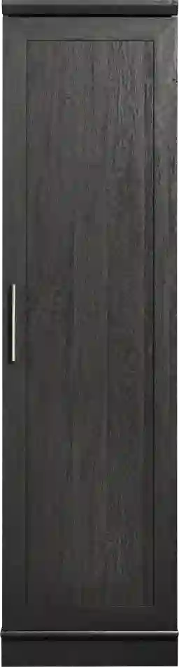 The Dimassa black storage cabinet has three adjustable shelves that will accommodate items of all shapes and sizes. One fixed shelf in the center plus the bottom shelf provides five total shelves. Reversible door opens to the left or right providing versatile placement in any room. Adjustable base levelers for alignment on uneven flooring. Customer assembly is required.
