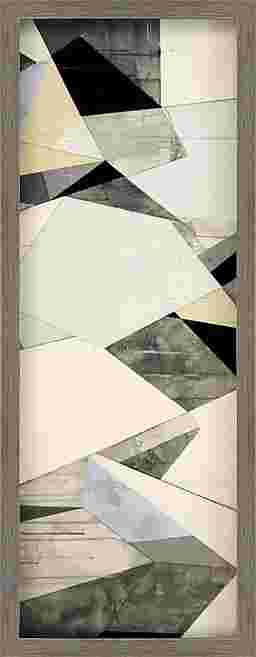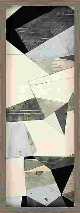 Unique and artistic, the Dimensional Thoughts artwork features geometric shapes that converge in a fascinating pattern. This set of three is framed in a brushed silver finish shadow box style molding.
