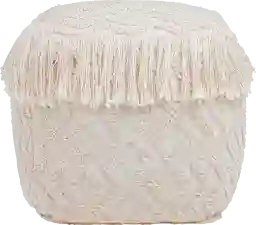 Crafted from 100% cotton, this versatile pouf features textured geometric designs and tasseled edges. Can be used as a traditional seat, ottoman or footrest.