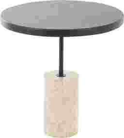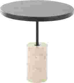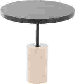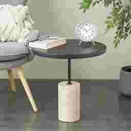 Inspired by sleek elegance and clean lines, the Dinne accent table is perfect for any home. The minimalistic design offers effortless luxury with monochromatic tones and bold, angular structures. Constructed from a blend of iron, marble, and wood, this black side end accent table combines the durability of iron with the natural beauty of wood for a sleek design. This round table boasts a sophisticated oiled black finish, complemented by an ivory color base, adding a touch of modern elegance to any space. The notable features of this wood accent table include its round shape, sleek matte finish, and eye-catching ivory marble base which combine functionality with aesthetic appeal. Customer assembly is required.