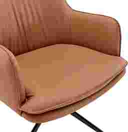 The Dipaolo caramel swivel accent chair exudes contemporary elegance. The textured leatherette guarantees longevity and resistance to wear and tear. This chair's distinctive design feature is the beautifully wrinkled material on the back combined with black powder-coated steel legs, which adds a touch of sophistication and ensures that the Dipaolo stands out in any setting. Customer assembly is required.