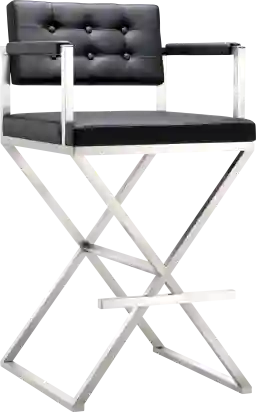 Furnish your kitchen or bar area in contemporary style with the Director black barstool. The solid stainless steel frame provides a sturdy base, while the plush extra deep seat and footrest ensure maximum comfort. The combination of angles and gentle curves gives this stool an eye-catching appearance, while the neutral color allows it to match well with any decor.