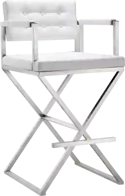 Furnish your kitchen or bar area in contemporary style with the Director white barstool. The solid stainless steel frame provides a sturdy base, while the plush extra deep seat and footrest ensure maximum comfort. The combination of angles and gentle curves gives this stool an eye-catching appearance, while the neutral color allows it to match well with any decor.