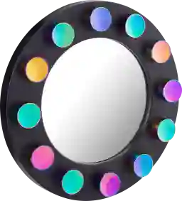 Decorating your space just became a whole lot more exciting with handmade Discostar mirror! The Discostar mirror boasts a matte black finish complemented by iridescently colored studs which will certainly add stylish flair to your space. Customer assembly is required.