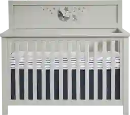 Create a stylish and comfortable bedroom for your little one to grow with the Starry Dreams with Mickey Mouse nursery. Each stunning piece is crafted of hardwood solids in a painted gray finish that blends well with a wide range of styles. Made with safety in mind, the convertible crib features a four-position link spring, allowing it to adapt to the different stages of your child's development. The included toddler rails can transform the crib into a toddler-sized daybed. Completing the set are removeable art panels that features fun, peaceful depictions of Mickey Mouse gazing at the stars. Customer assembly required. Mattress and changing pad sold separately.