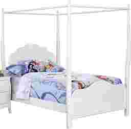 As charming as any fairy in Pixie Hollow, this canopy bed is just what your little girl's bedroom needs. It features a beautifully shaped head and footboard with a pretty canopy above. A decorative swirl pattern and shimmery pearl white finish add a magical touch. A trundle unit, sold separately, makes sleepovers simple. Disney Fairies Full Canopy Bed
