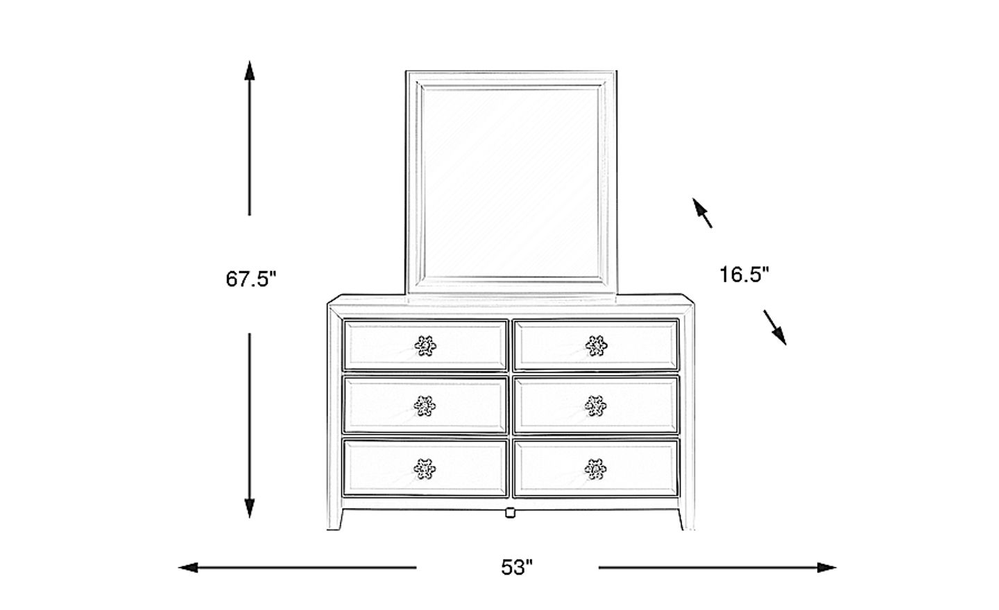 Make your child's bedroom more enchanting with the shimmering Disney Frozen dresser and mirror in ice blue. Chrome recreations of snowflakes and acrylic crystal knobs highlight the exterior front panels of the six-drawer dresser. Internally, the dresser is configured with French dovetails to provide support against feisty pulls from your child. A matching mirror with beveled glass completes the set.