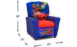 Give your little one the perfect place to slow down their engine with this fun Disney Cars 2™ recliner. Featuring their favorite characters - including Lightning McQueen™ and Mater™ the cozy recliner has a cup holder on one arm and a padded footrest.