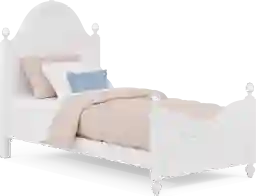 Send your child off to sleep with the regal Disney Princess panel bed. Elegantly appointed with a swirling ribbon design and acrylic crystal finials on the four posts, this bed truly is fit for your little princess. Crafted with birch veneers and a sparkling white finish, this bed has all the style a princess deserves without sacrificing on quality. Mattress and foundation (if required) sold separately. Bed shown is full size.