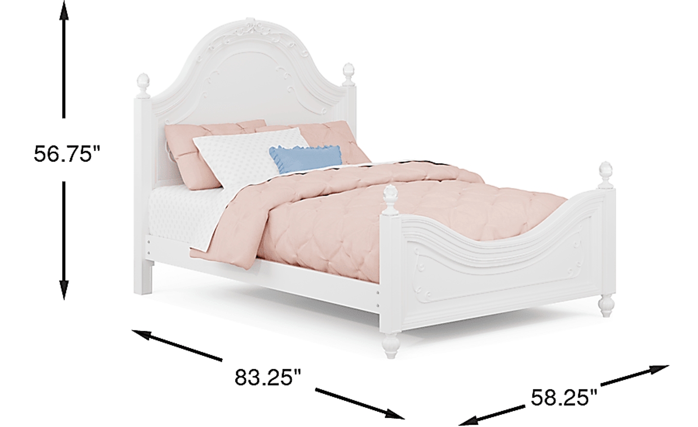 Send your child off to sleep with the regal Disney Princess panel bed. Elegantly appointed with a swirling ribbon design and acrylic crystal finials on the four posts, this bed truly is fit for your little princess. Crafted of wood solids with birch veneers and a sparkling white finish, this bed has all the style a princess deserves without sacrificing on quality. Mattress and foundation (if required) sold separately.
