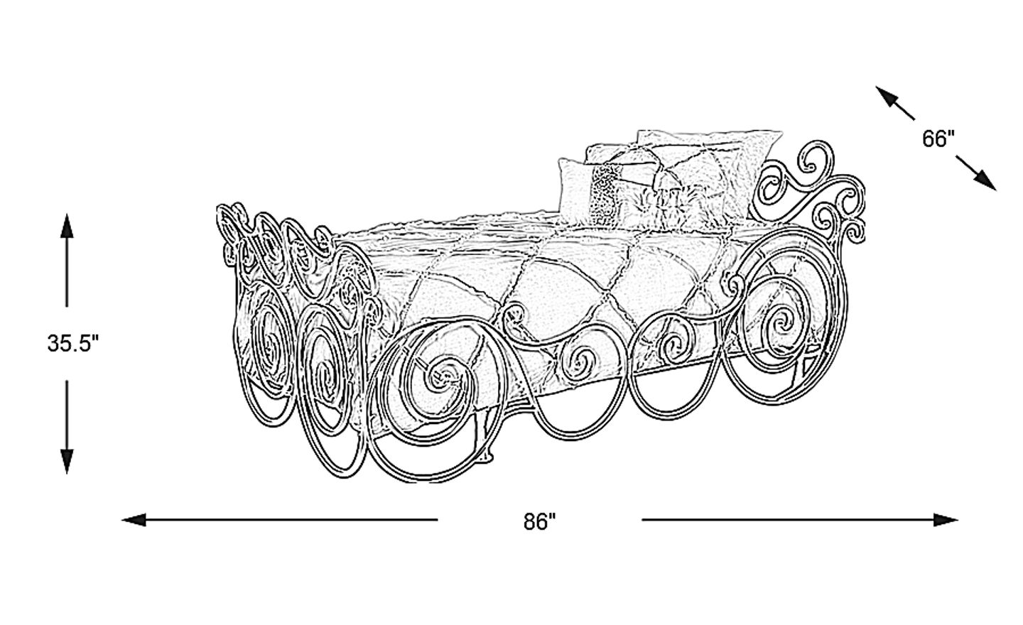 Dreams begin with this whimsical pumpkin carriage bed. This enchanting daybed is made of scrolled metal and has an appealing white-gold finish. Offering fantastic whimsy, a special three-sided bed skirt with white satin edging and a 14" drop evokes final touches of happily ever after for your princess. Mattress and foundation (if required) sold separately. Bed shown is twin size.