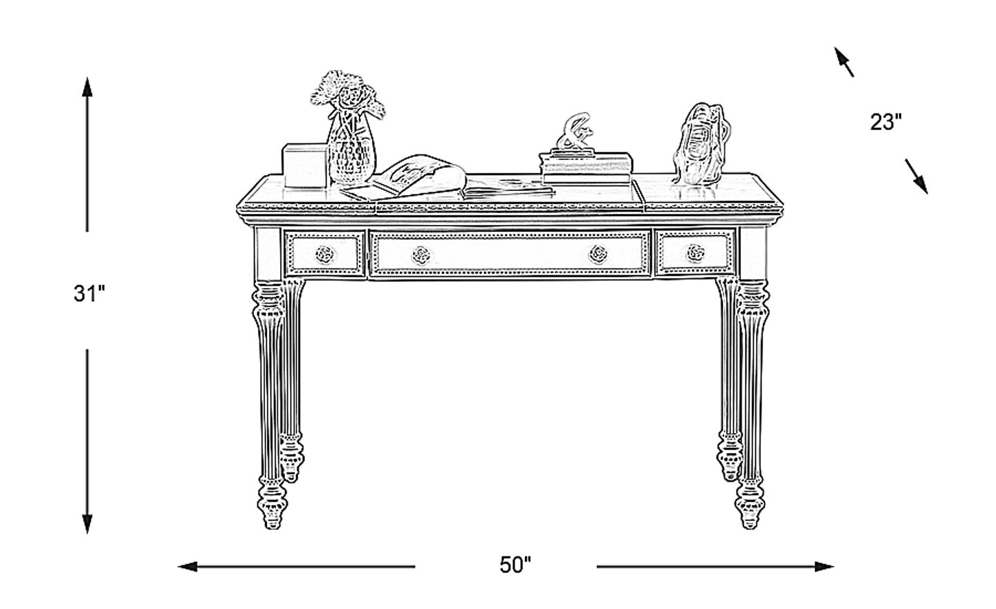 Beautifully detailed, the Disney Princess vanity desk is a pretty and functional workspace. It can be used as a traditional study surface or, with its lift up mirror (on the center) it instantly becomes a vanity; when the mirror is in the open position you'll find a felt lined storage area perfect for keeping little treasures safe. Featuring a silver finish, the desk has a drop down keyboard tray, two storage drawers, custom rose shaped drawer pulls and fluted legs.