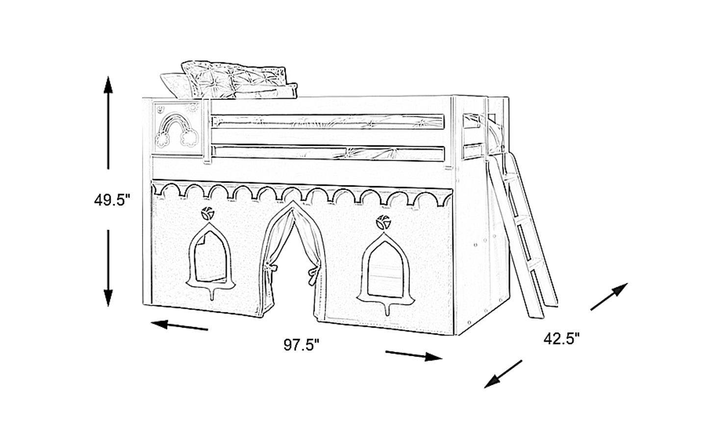 Tuck your child into the bed of their dreams with the Fairytale loft bed from our Disney Princess collection. This adorable loft features a beautiful white finish and a pink tent underneath to help your little feel like royalty. This bed comes complete with a whiteboard and ladder. Mattress and foundation (if required) sold separately.