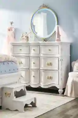As part of the official Disney Princess collection, this mirror is designed to pair seamlessly with other "Royal Gold" or "Sparkle White" finished items. Its whimsical carriage shape serves as a statement piece that anchors the room’s theme. For a cohesive look, our stylists suggest layering the room with complementary accessories such as pink vanity chairs or fairytale-inspired wall art to create a balanced, enchanting environment that grows with your child’s imagination.