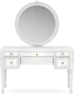 Create a fairytale escape for your little royal with the Disney Princess collection, where every night feels like a bedtime ball and every morning begins a brand-new adventure. With three drawers and a spacious work surface, the elegant desk in this set offers the perfect setting for everything from homework to coloring. The gently curved silhouette is finished in sparkle white and accented by custom gold rose drawer pulls with faux crystal insets. Featuring soft-close glides and French dovetail fronts with English dovetail backs, the drawers open smoothly and quietly. A pink felt-lined top drawer provides a soft space for special keepsakes and writing supplies, while a built-in power station with two AC outlets and dual USB ports brings modern convenience to this princess-worthy design. Paired with the round mirror, this desk transforms into an iconic vanity setup.