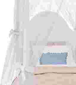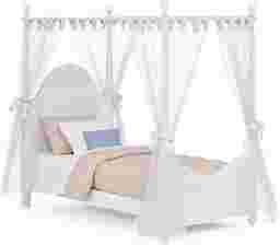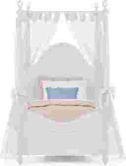 Bedtime is fit for royalty thanks to the gorgeous Disney Princess Canopy bed. Perfectly designed with a swirling ribbon motif and acrylic crystal finials topping each of the four posters, your little girl will adore this regal bed. With birch veneers in a sparkling white finish, this bed is the perfect way to settle down at the end of a long day of adventure. The white canopy fabric finishes off the look with extra royal pizazz for the perfect princess look. Includes canopy fabric. Mattress and foundation (if required) sold separately. Bed shown is full size.