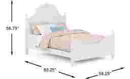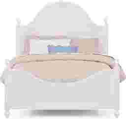 Create a fairytale escape for your little royal with the Disney Princess collection, where every night feels like a bedtime ball and every morning begins a brand-new adventure. Bedtime is fit for royalty thanks to the stunning twin canopy bed at the heart of this room. Crafted in shimmering sparkle white, the bed features a swirling ribbon motif and acrylic crystal finials crowning each of the four posters. The matching 6-drawer dresser blends elegance and function with gold bow and rose drawer pulls, faux crystal insets, soft-close drawer glides, pink felt-lined top drawers, and built-in power outlets. A coordinating LED-lit carriage mirror completes the dresser's graceful silhouette with fantastic flair, transforming it into a magical vanity setup. The glow can be controlled by remote or synced to music using the Lotus Lantern app, adding an extra sparkle to nighttime routines. Mattress and foundation (if required) sold separately. Includes canopy fabric.