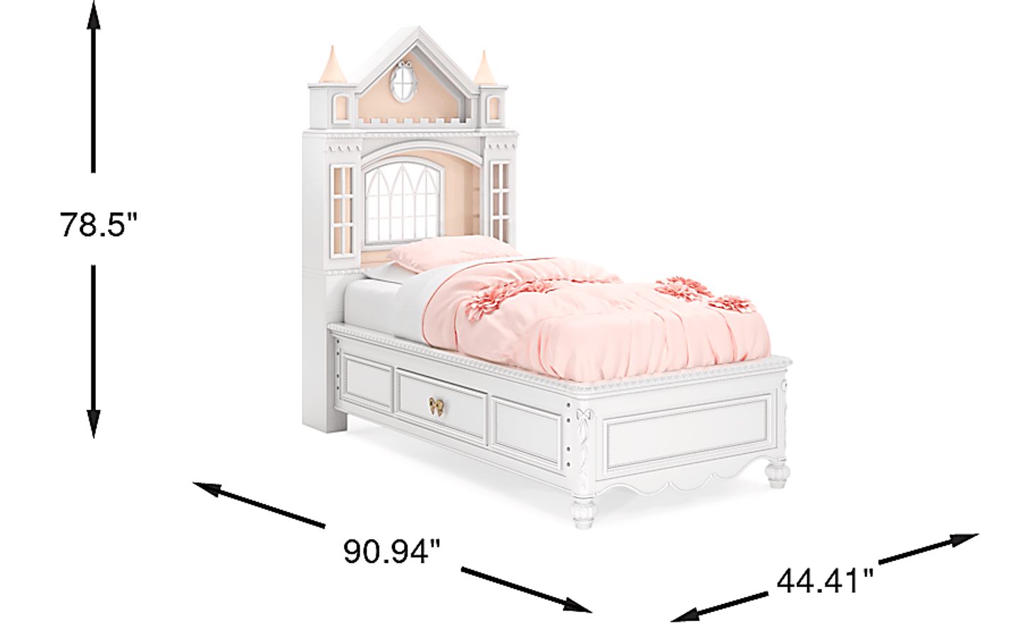 Disney Princess Sparkle White Twin Castle Bed With Storage Side Rails