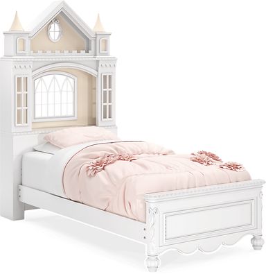 This bed blends fairytale magic with modern utility. The multicolor LED lights integrated into the castle headboard are fully customizable via an included remote or the Lotus Lantern app, which allows the glow to sync with music for an interactive experience. Additionally, dual USB charging ports are discreetly built into the headboard, providing a convenient power source for devices while maintaining the clean, "sparkle white" aesthetic.