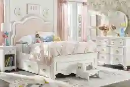 This bed blends fairytale magic with modern utility. The multicolor LED lights integrated into the castle headboard are fully customizable via an included remote or the Lotus Lantern app, which allows the glow to sync with music for an interactive experience. Additionally, dual USB charging ports are discreetly built into the headboard, providing a convenient power source for devices while maintaining the clean, "sparkle white" aesthetic.