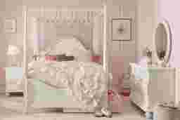 Create a fairytale escape for your little royal with the Disney Princess collection, where every night feels like a bedtime ball and every morning begins a brand-new adventure. Framed in a shimmering sparkle white finish, the bed's design balances softness with structure. Upholstered in blush pink fabric with a beautifully embroidered golden heart and bow motif, the headboard offers an iconic nod to classic princess elegance. Carved rose and bow details at the footboard complete the twin bed's enchanting look. The coordinating 6-drawer dresser features gold bow and rose drawer pulls with faux crystal insets, soft-close drawer glides, pink felt-lined top drawers and built-in power outlets. A matching mirror completes the dresser's sweet silhouette with fantastic flair, while sparkling white finish across every piece adds a touch of shimmer and shine to your child's space.