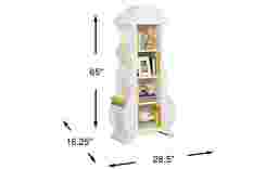 Based on the character of Garderobe from 'Beauty and the Beast,' the Disney Princess bookcase is an enchanting piece to house all of your daughter's favorite fairytales. Crafted with a white finish, three fixed shelves offer plenty of room for storage or even display. On one side, she'll find a beveled mirror to make dress up a fun and festive experience. On the opposite side, beautiful custom rose carvings feature hooks for jewelry or a coat. An open pocket on the side can accommodate a tablet, homework, or even a few magazines, extending its usefulness and making this bookcase a perfectly pretty way to complete her room.