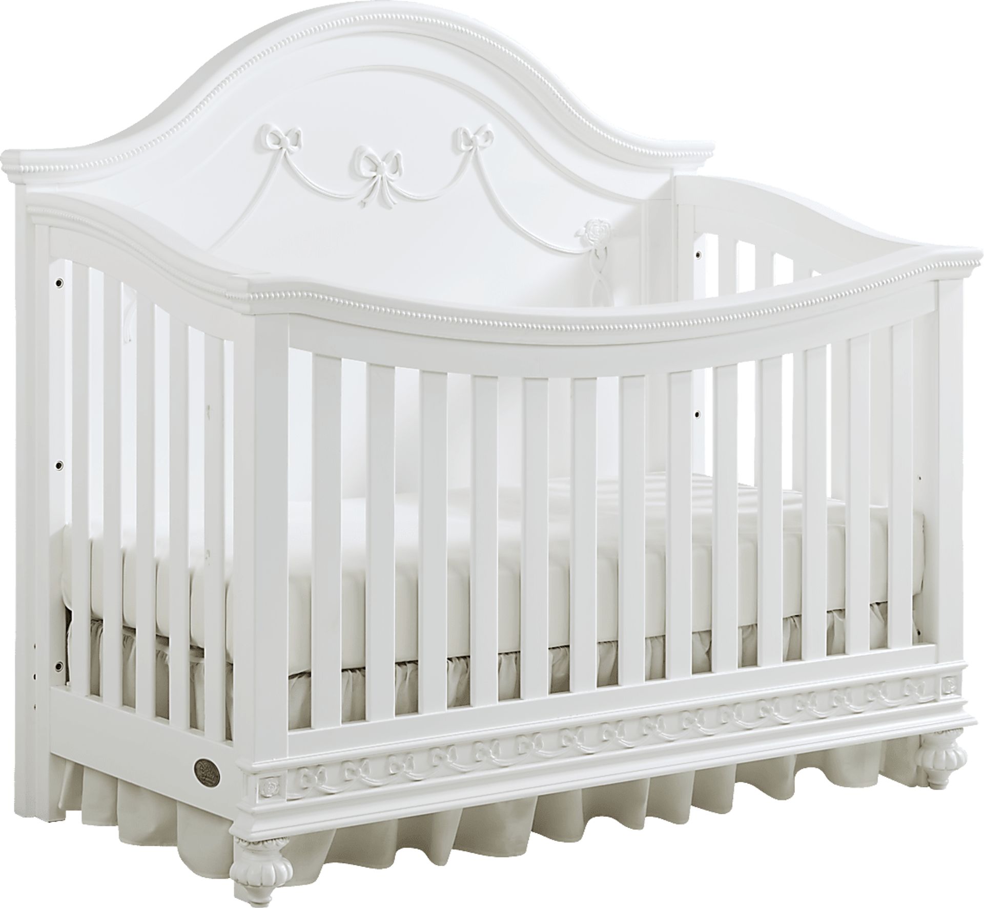 Exquisite details with feminine flair make the Disney Princess Fairytale crib the perfect place for your little one to achieve sweet slumber night after night. Crafted with poplar solids, the back panel features lovely carvings of ribbons, bows, and roses atop an antiqued non-toxic white finish; this beautiful theme also follows through on the front of the base as well. A four point positioning system allows you to adjust the mattress height as your baby grows. Supported by two fluted spool feet in the front, this crib is JPMA certified and it meets or exceeds all safety standards set by the CPSC and ASTM. Add the toddler rails or conversion rails (both sold separately) to extend this crib's usefulness into their toddler years and beyond! Customer assembly required. Easily converts to toddler bed with toddler rails as an additional purchase.