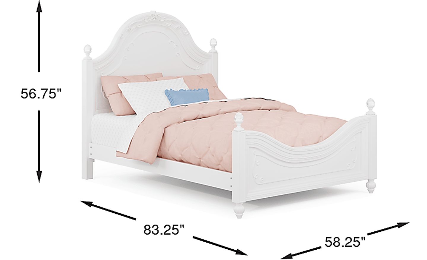 Send your child off to sleep with the regal Disney Princess panel bed. Elegantly appointed with a swirling ribbon design and acrylic crystal finials on the four posts, this bed truly is fit for your little princess. Crafted with birch veneers and a sparkling white finish, this bed has all the style a princess deserves without sacrificing on quality. Mattress and foundation (if required) sold separately.