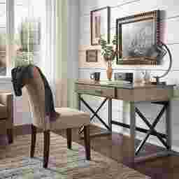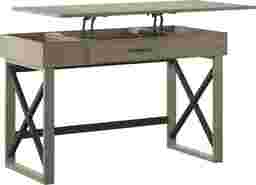 Stay on top of all your work with this gray finish Ditmars lift top desk with 1 USB and wireless charger. This farmhouse-inspired desk is equipped with a lift top function that raises to create a standing desk, perfect for working long hours. Use the included USB port and wireless charging station to keep all your electronics charged and by your side as you work. A clean, metal x-cross side detailing adds some contemporary flair to the piece, offering a transitional look that looks great in a variety of settings. The grey finish provides a neutral look so it can seamlessly blend with any existing color palette. Customer assembly is required.