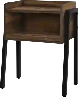 Save space while providing the perfect sidekick to any furniture ensemble. This Division end table, featuring a reclaimed look finish in brown, is equipped with an open shelf and modern black metal legs to complete the industrial-inspired design. Made for showing off your favorite decor items or storing books in the living room or family room, this side table can also be used as a bedside table. It is an on-trend piece that is waiting to be added to any living space. Customer assembly is required.