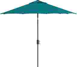 Let conversation and laughter fill your sunny days, knowing the Doheny Point umbrella brings a steady presence to protect the party against summer sun and spring showers with equal cheer. Opening with a crank, an octagonal shade in colorfast turquoise blue stands on a rust-resistant aluminum post in bronze with a handy tilt function to allow the top to be angled at the press of a button. An 80 lb. base in bronze is included for freestanding use.