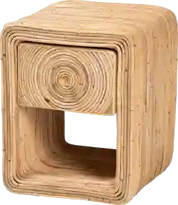 The charisma and convenience of paradise graces your bedside in the form of the lovely Doisy brown nightstand. This bohemian piece is handcrafted from natural rattan by skilled artisans. The drawer offers secure storage of all your nightly essentials while the open shelf accommodates larger items. The Doisy will arrive fully assembled and is adorned with a metal drawer knob that draws attention to the beautifully geometric of the laminated rattan. An efficient and beautiful accessory, the Doisy uplifts any bedroom. Rattan is a product of nature and may have variations in areas such as, but not limited to, color, pattern, grain and texture. The hair-like strands of rattan/rattan-fiber are common due to the nature of the material.