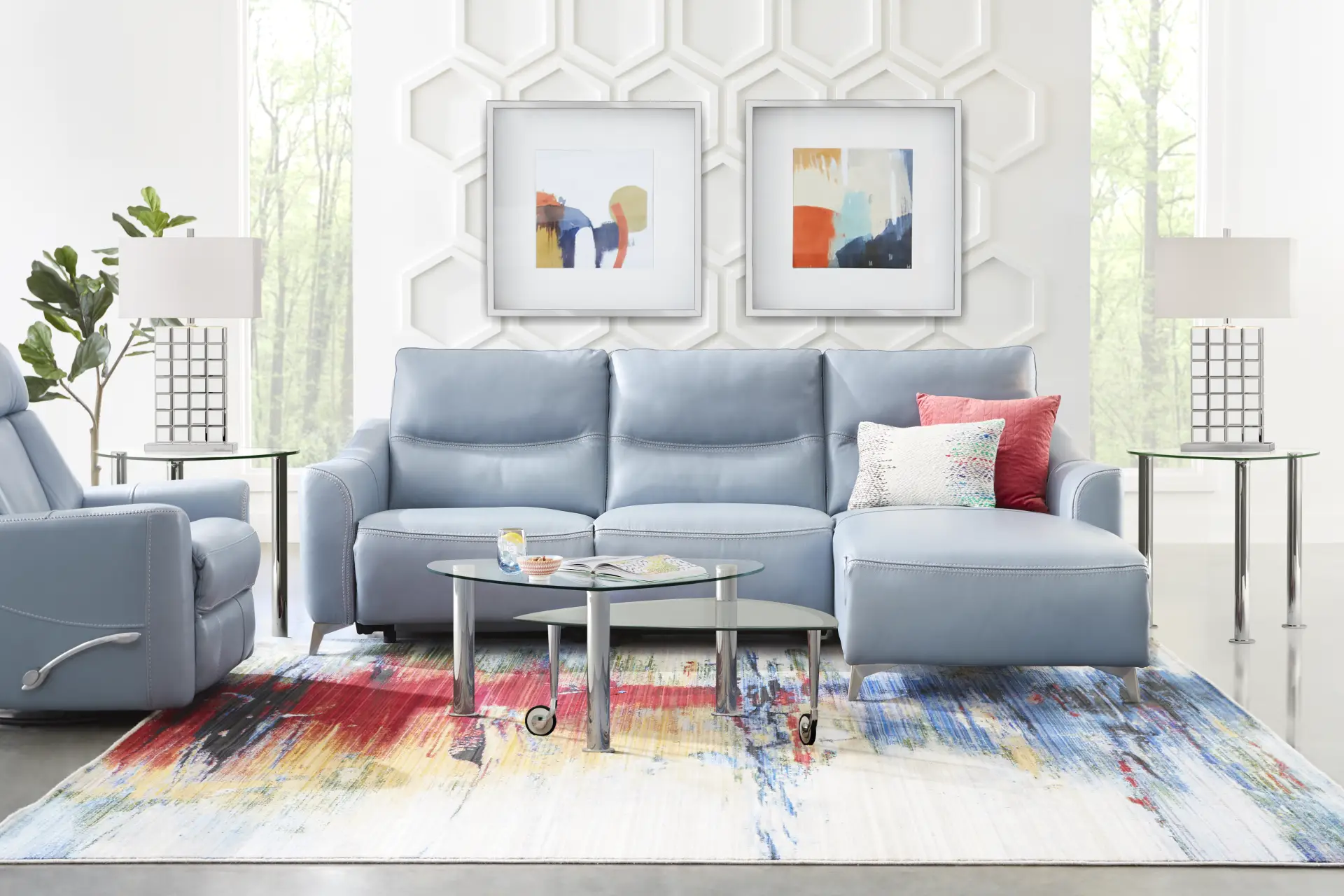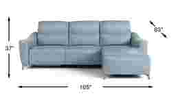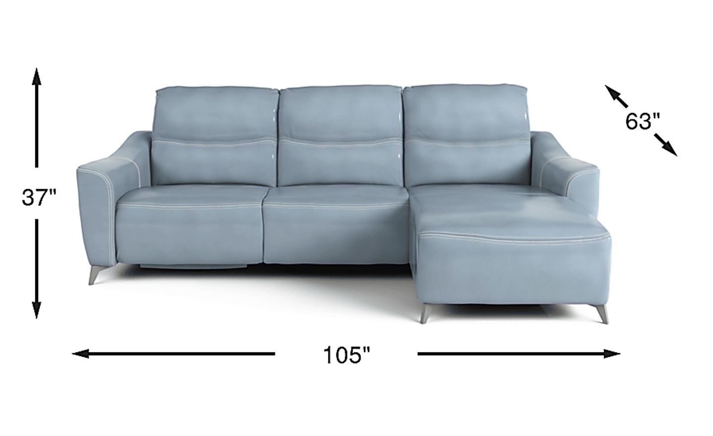 Whether you're hosting a casual movie night or throwing a glam cocktail party, the Domio sectional provides comfort, luxury and style. Its soothing hydra colored leather upholstery where the body touches provides a comfortably supple surface for unwinding. The sectional sits atop a set of gleaming angled chrome legs for contemporary appeal, while its flare arms create a chic silhouette. Moccasin stitching on the seats and arms provides a tailored finishing touch. Upholstery: Top grain leather where the body touches and vinyl sides and backs.