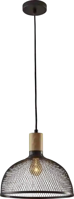 Add a dramatic industrial element to your dining or living space with the Donlar large pendant. A contemporary black metal mesh shade is paired with a natural rubber wood accent resulting in a modern industrial style with hints of Scandinavian influence.This style looks great with all bulb types. Use a vintage Edison bulb for soft, mood lighting or an LED bulb, not included with purchase, for efficient overhead light. With 72 inches of black fabric covered cord, this pendant can be adjusted to fit your ceiling height. Professional installation is highly recommended. Customer assembly is required. Professional installation is highly recommended.