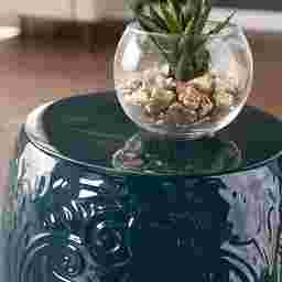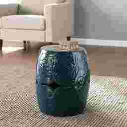 Make style waves with this ceramic Donleigh side table. Textured scroll work unfurls across the glossy base, while curvy cutouts welcome sea breezes and sunny skies. Upgrade your design scheme when you add this round accent table as a plant stand in your entry or as an eclectic side table in your open concept space. Whether you're watching the tide come in from your screened-in porch or enjoying some much needed relaxation,this end table keeps your design cool and coastal all day long. Customer assembly is required.