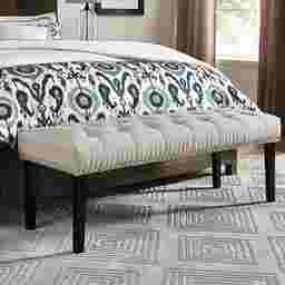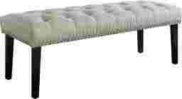 The Dorian beige bench is the perfect finishing touch for your bedroom, providing a stylish companion piece to your bed and a peaceful place for you to sit while you transition from one part of your day to the next. This bench features a beige linen-like cover, accented with diamond-pattern button tufting on the seating area, and brushed nickel nailhead trim along the edge. The tapered wood legs finished in an ebony hue complete this striking, yet functional bench. Some customer assembly required.