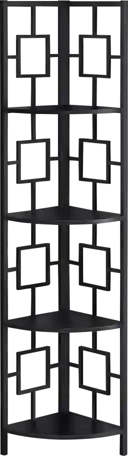 Add the perfect corner piece to any room with this sophisticated black Dorminey bookcase, complete with four fixed shelves. This transitional designed bookcase blends well with any type of decor, providing additional display space without sacrificing style. Use it in a corner of your living room, family room, guest room, home office, or hallway for a tidy way to store your books and showcase your accent pieces. Customer assembly required.
