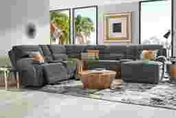 A rejuvenating respite for mind, body and soul, the Douglas Park sectional is a treasure of all-enveloping comfort. The cool charcoal color of the woven upholstery tailors the piece with a casual sophistication that's fresh yet timeless. Equipped with a pair of dual power reclining seats as well as a power reclining right-arm facing chaise, adjusting your headrest or the position of your feet is as easy as pressing a button. Additionally, two lift top, soft close storage consoles feature dual cup holders alongside USB and USB-C charging ports. Upholstery: 100% Polyester.
