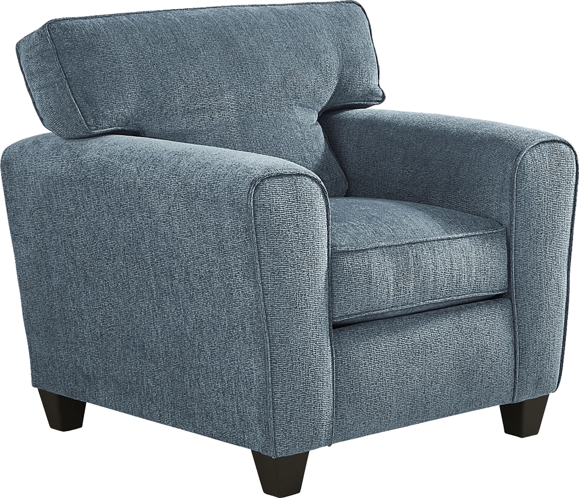 Dressed up and feeling dapper, the Dover chair excites at a glance and invites good times whether you're bringing the crowd or relaxing solo. A retro-inspired silhouette features welted seams upholstered in soft blue chenille, creating a crisp outline throughout this stunning contemporary piece. Plush, reversible box cushions are flanked by wide mailbox arms and lean casually against the wedge-shaped back. Tall, tapered legs add a last touch of vertical appeal in a dark finish. Upholstery: 100% polyester.