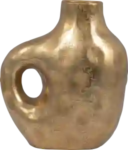 To create an intentional, curated look, our styling experts suggest grouping decorative accents in odd numbers, such as three. You might pair this 11-inch gold vase with a smaller ceramic bowl and a textured tray to play with varying heights and materials. Because of its abstract theme, it works exceptionally well in contemporary or modern minimalist settings as a standalone sculptural piece.