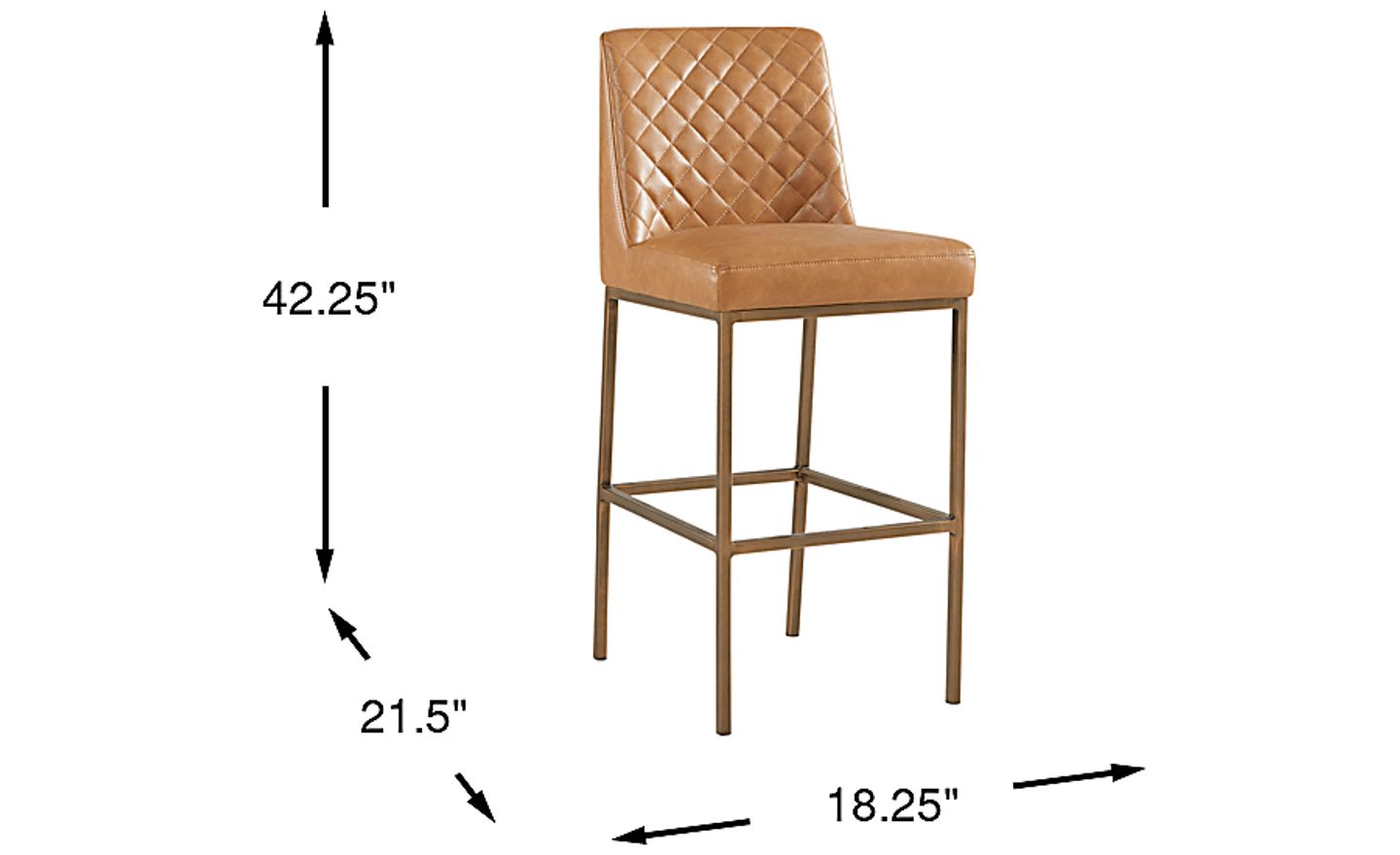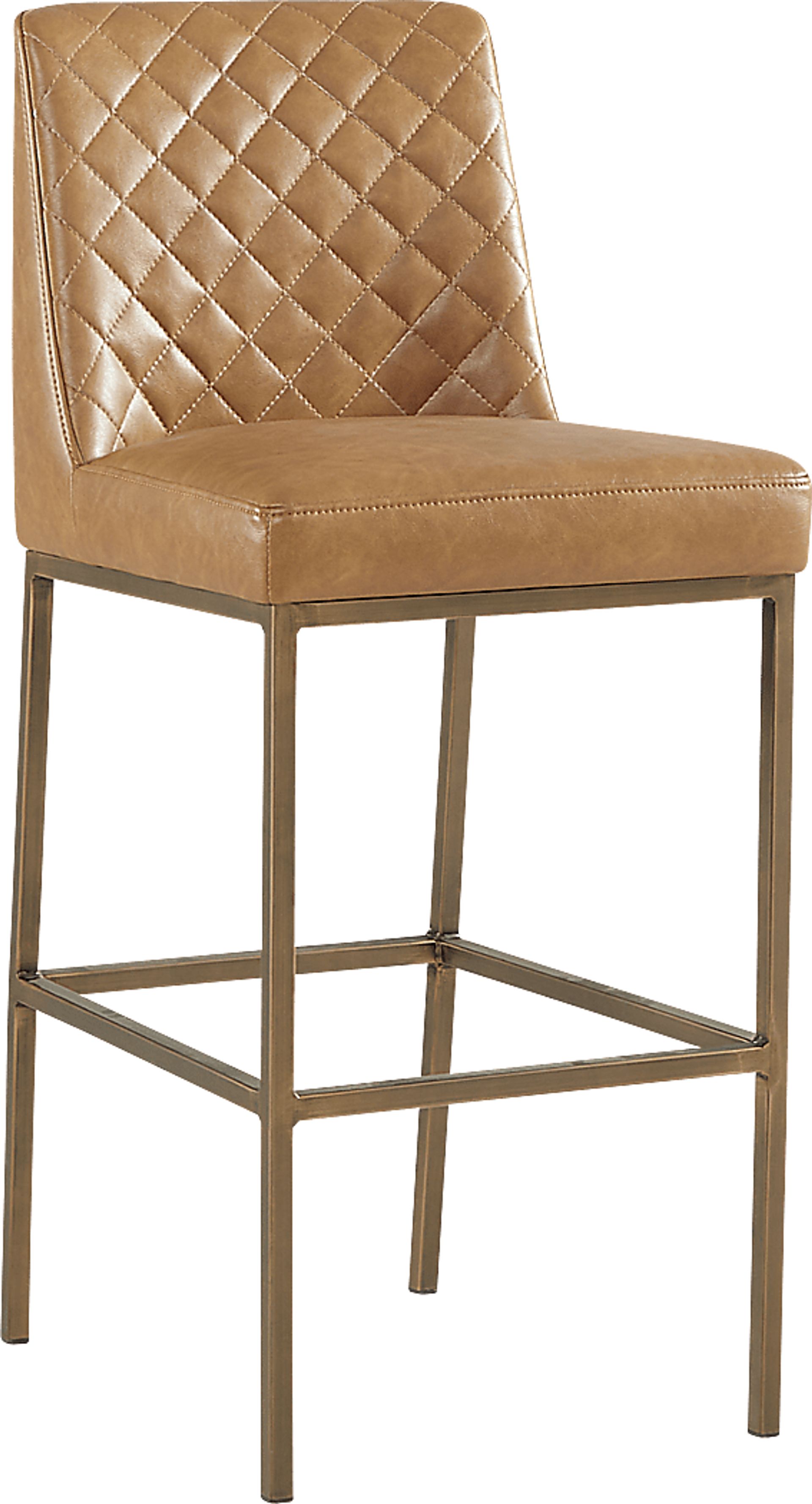 Boasting contemporary vibes and durable construction, the Downsview barstool is a wonderful choice for your kitchen or dining area. Crafted of hardwood solids in a brass finish, the sturdy base provides support while the upholstered seat and back cushions offer excellent comfort. The cushions, made to look like leather, come in a stylish camel color. A diamond-like pattern on the seat back completes the stunning look.