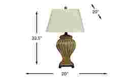 Full of elegant curves, the Dracy table lamp is a choice accent piece to enhance your home. With an antique walnut brown finish, it features a unique shape perfect for traditional styling. This lamp includes a 3-way switch allowing you to adjust the brightness according to your needs and takes up to a 100 watt bulb (not included).