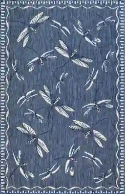 Add a touch of classic style to your home's indoor or outdoor spaces with the Dragonfly Dance rug. This eye-catching rug comes in a rich navy color and displays a lively collection of dragonflies in flight. Crafted in Turkey, this durable piece is power loomed to create a subtle, naturally beautiful look that your guests will love. 100% Polypropylene.