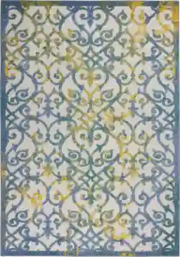 Polypropylene is well-regarded for its colorfastness and UV resistance. While all textiles can eventually show signs of wear under constant, intense sun, the synthetic fibers in this rug are specifically designed to retain their blue, ivory, yellow, and green hues far longer than traditional indoor materials. This makes it a reliable, colorful centerpiece for sun-drenched patios or poolside decks.