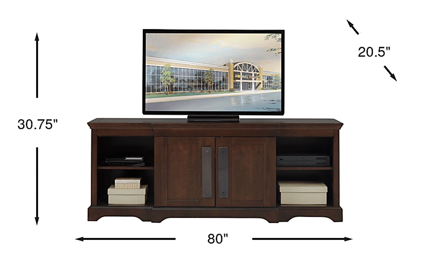 Introduce stylish and practical storage into your living room with the Drayden Hill console. Perfect for your TV and additional accessories, this piece is expertly crafted with maple veneers in a rich brown finish for a timeless, transitional style. An adjustable shelf on each side helps this console tailor to your needs while the rustic, antiqued copper finished hardware adds an attractive finishing touch to the storage cabinets.